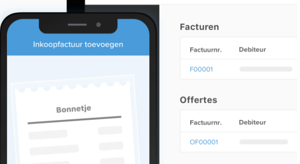 Hoe eerder je factureert, hoe eerder je betaald krijgt. Stuur je verkoopfactuur in eigen bedrijfsstijl en geef een betaallink mee. De digitale factuur word automatisch geboekt in je administratie! Offerte gemaakt? Deze is snel om te zetten naar een definitieve verkoopfactuur.